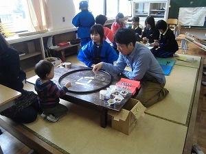 塩っ子祭り体験第2部は、午後行われました。学校運営協議会の皆さんが中心になり、地域のボランティアの方を募っていただき、7つの体験コーナーを設営してくださいました。