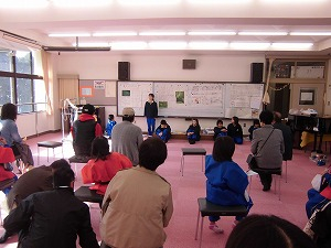 9時~10時20分まで、前半と後半の2部構成で、学習の成果を発表します。発表する時間帯でない人は、他の学年の発表を聞きに行き、今後のまとめ方や学習の参考にします。保護者や地域の方は子ども達の発表を真剣に聞いたり、活動に参加したりしてくださいました。