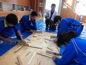 紙細工は、紙飛行機を作り、体育館で飛ばして楽しみました。