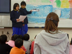 6年生は、ふるさと塩津にまつわる昔話や旧跡の発表をしました。