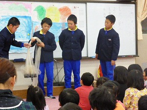 5年生は、米と魚をもとに西浅井のめぐみをテーマにして発表をしました。