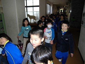 今年は、初めての訓練で、受付で必要な事項を記入して、児童を確認していただきました。
