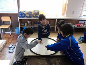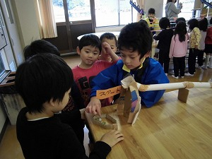 1年生は、秋のお祭りで、秋のものを使っていろいろと遊ぶおもちゃ屋さんを開きました。