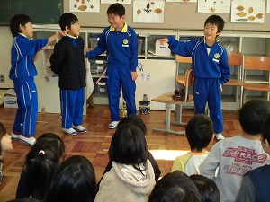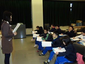 次に3校時、5年生の発表、クイズコーナーです。音楽室で行いました。