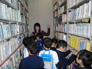 11月25日(月)に、生活科の学習で、高月図書館の見学に行きました。