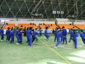 いよいよ長浜ドームで競技が始まりました。塩津小学校は、第3組です。