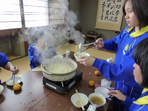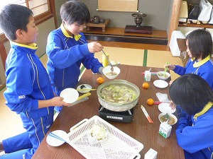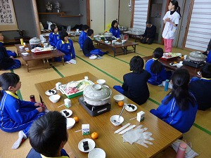 約1時間の鍋料理でした。普段は少食な子どもたちが、今までの給食以上にいただいたと思います。お腹も満腹で午後からのみんなの動きが鈍かったかな?