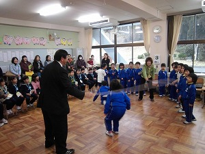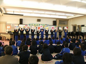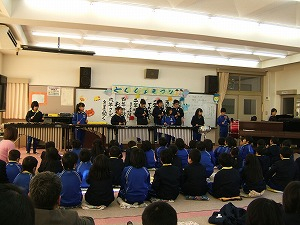 P1010164   寒い時期での短い時間の交流でしたが、子どもたちにとってもいっぱいの笑顔をいただいた訪問になりました。「まんてん」の皆さんありがとうございました。