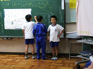 Dscf5327 それから、一人ひとり1年生でがんばってやってきたことを発表しました。音楽の時間に吹けるようになったピアニカの演奏、カタカナや漢字の勉強、縄跳びのあやとびや二重跳び、朝顔の紙芝居、を披露しました。