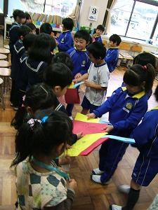 P1010124  最後はプレゼントを渡してお別れです。「また、入学したら遊ぼうね。」「とても楽しかったよ。」「ありがとう。」いっぱいのあったか言葉に包まれた交流会でした。