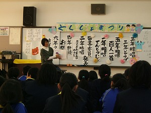 2月7日(金)。日頃詩の暗唱や読書に励んでいる発表の場として「読書祭り」を行いました。
