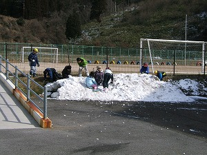 Dscf5602 その後、体育館の軒下の雪やふるさと公園の滑り台や雪で楽しく活動していました。