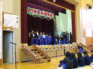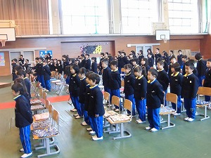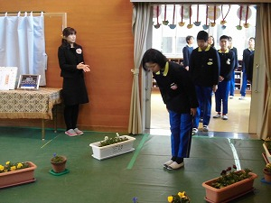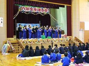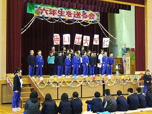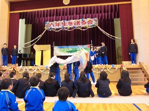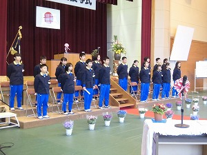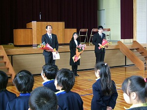 お世話になった先生方に、お別れの言葉を述べ、花束を児童代表が手渡しました。