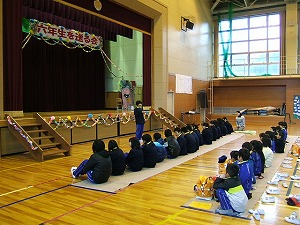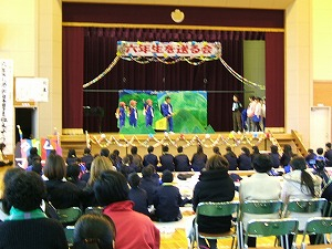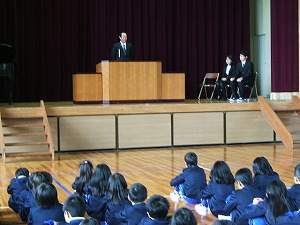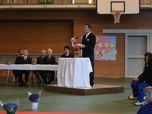 「わんぱくでもいい、たくましく育って欲しい」「チャンスを大切にしてがんばって欲しい」「ふるさとの自然を大切に」など、この塩津小学校で過ごされた思い出を交え、願いを述べられました。
