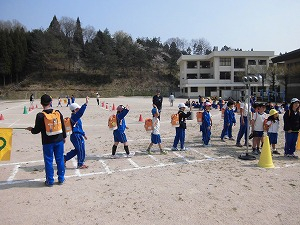 その後、班ごとに班旗づくりをします。