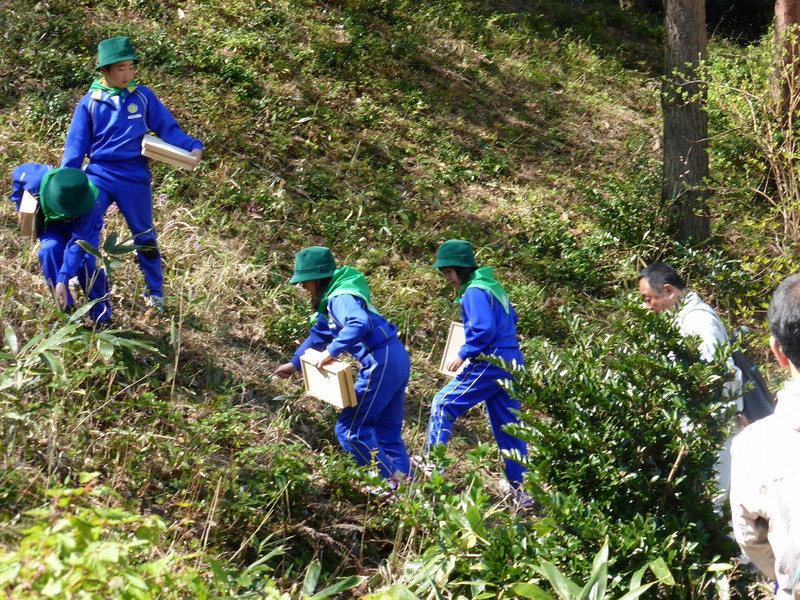 森林学習はふるさと公園を舞台に、「春の宝物をさがそう。」をテーマに山の自然を見つける活動をしました。