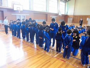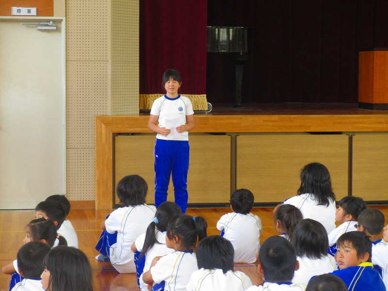 今年の優勝は、青組3班でした。準優勝は、赤組1班。赤2班は、「大きな声であいさつできたで賞」、青4班は「仲良く活動できたで賞」、黄5班は「しっかりお礼が言えたで賞」、黄6班は「上手にならべたで賞」をいただきました。