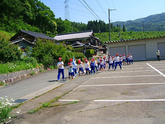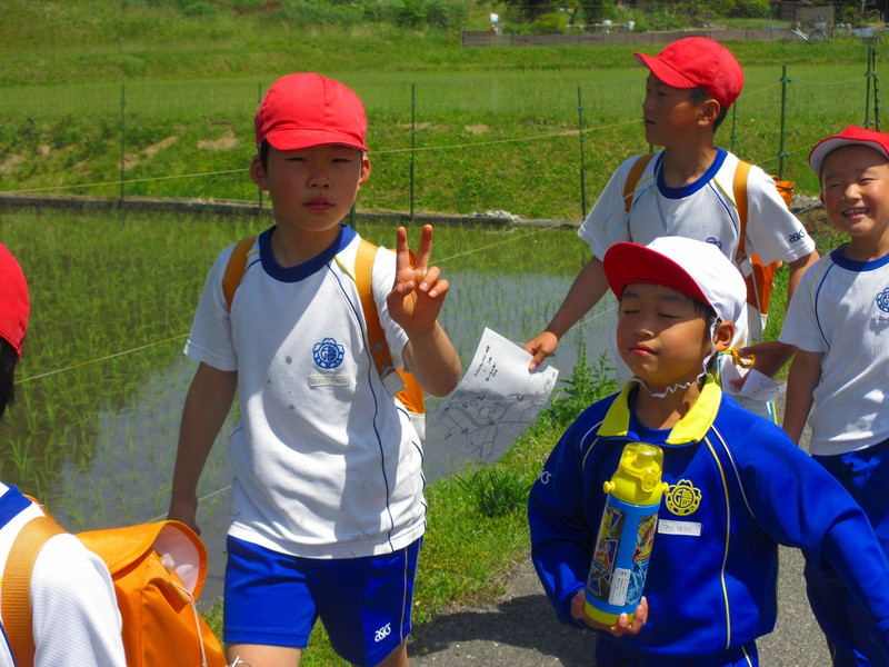 今年のコースは、余方面。横波橋、農業排水処理場、正應寺、公園、公民館の5つのチェックポイントを、たてわり6班に分かれて、ウォークラリーしました。