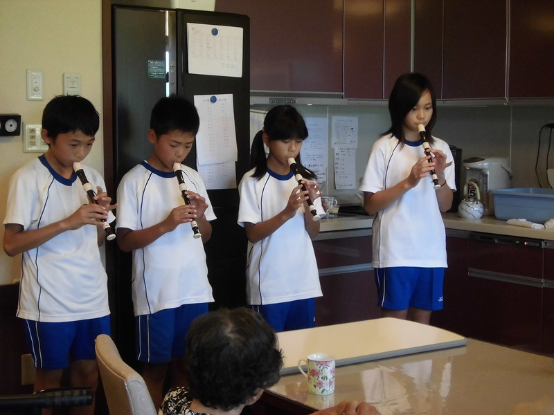 「まんてん」の皆さんに喜んでもらえるよう計画し、リコーダー演奏と昔の遊びをすることにしました。