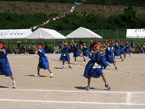 1年生から3年生までで、今年は「にんじゃりばんばん、キッズソーラン」の二つを踊りました。キッズソーランは、過去全校で演技していたもので,保護者からも「懐かしい」「これはいいね」などの声を聞きました。