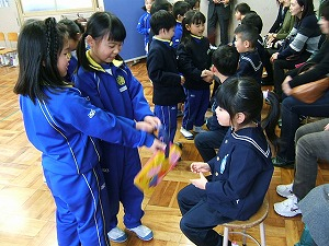 5年生は、園児が楽しめるよう工夫して関わることをめあてにしていました。