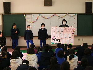 28日(水)の元気タイムには、給食委員会による給食集会が行われました。