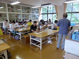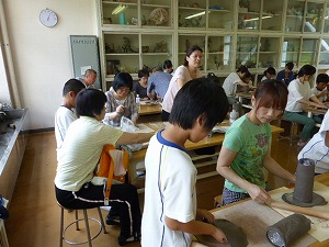 7月19日(土)4年生の親子陶芸教室を行いました。市内の教材さんのお世話をいただいて、指導もしていただきました。