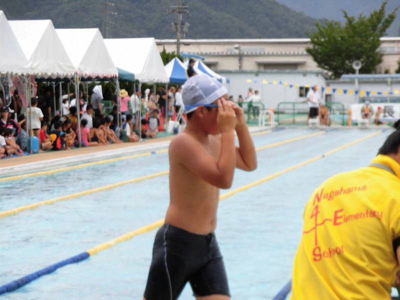 この日のために練習を重ねてきましたが、今年は天候が不順なため、十分に練習で技術を高めるまでには至りませんでした。しかし、プール開き当初は25mが泳げなくても、100mを泳いで選手として参加するくらいに伸びた子もいます。この水泳練習で、ほとんどの子が50m以上泳げるようになりました。