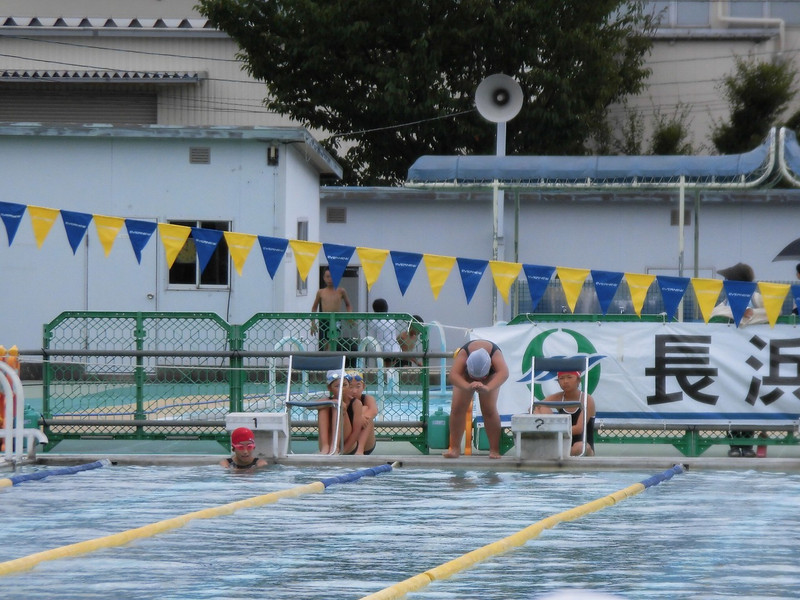 7月27日(月)長浜市水泳記録会に参加しました。市内の27校の5、6年生400人以上が参加する大きな大会です。