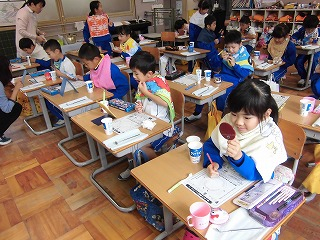 「怖いな-。」と言いつつ、みんな真剣な表情で聞き入っていました。今後の将来を考えると十分気をつけていく必要がある学習でした。みんな今回の学習は心にしみたようです。