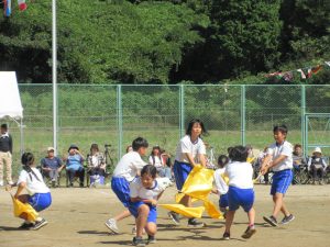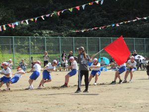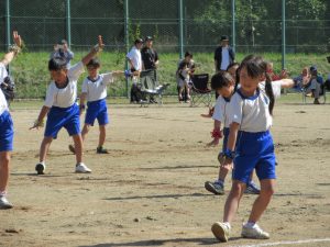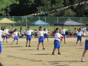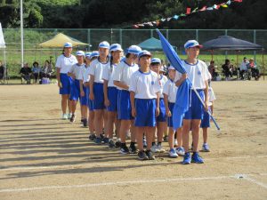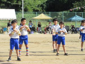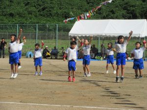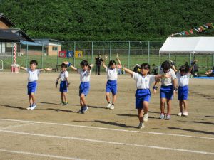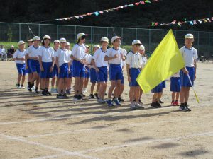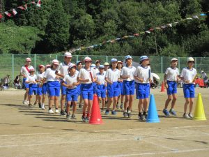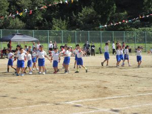 雨で2日間の延期を余儀なくされ、待ちに待った今日、塩津小最後の運動会が無事開催できました。