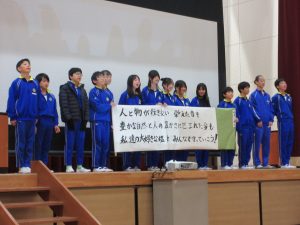 3年生以上は総合的な学習や、社会科で学んだことを発表しました。劇仕立てにして発表したり、クイズを出して聞いている人が退屈しない工夫があったりしました。